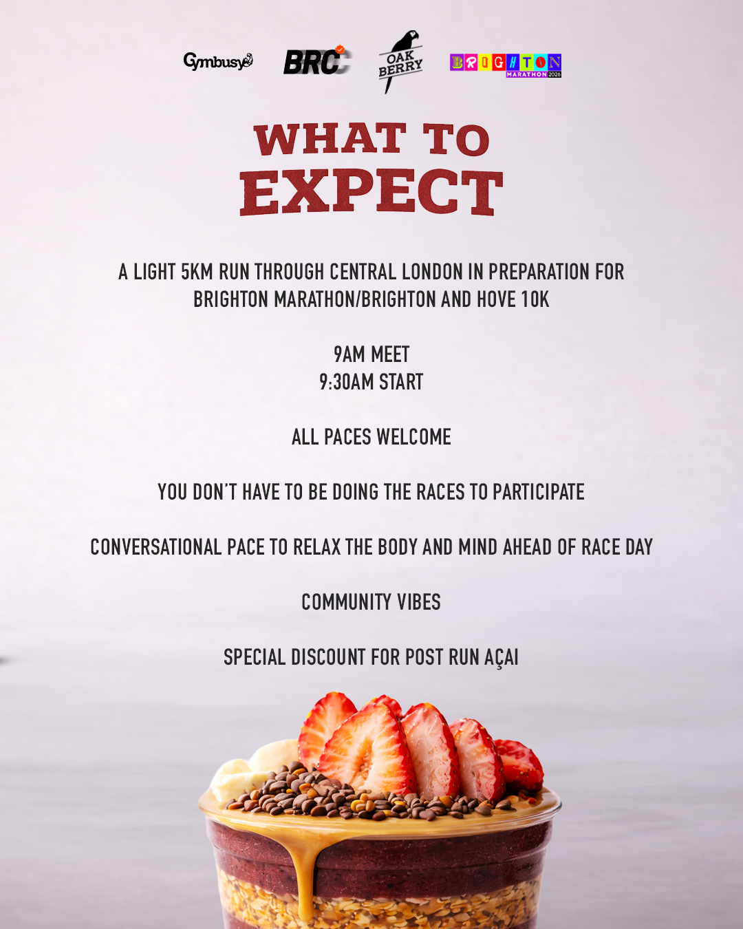 Expect a supportive atmosphere, good energy, and a chance to be part of the build-up to race weekend — plus a post-run açaí discount for those looking to refuel after.